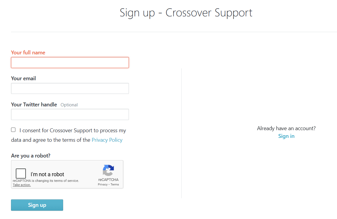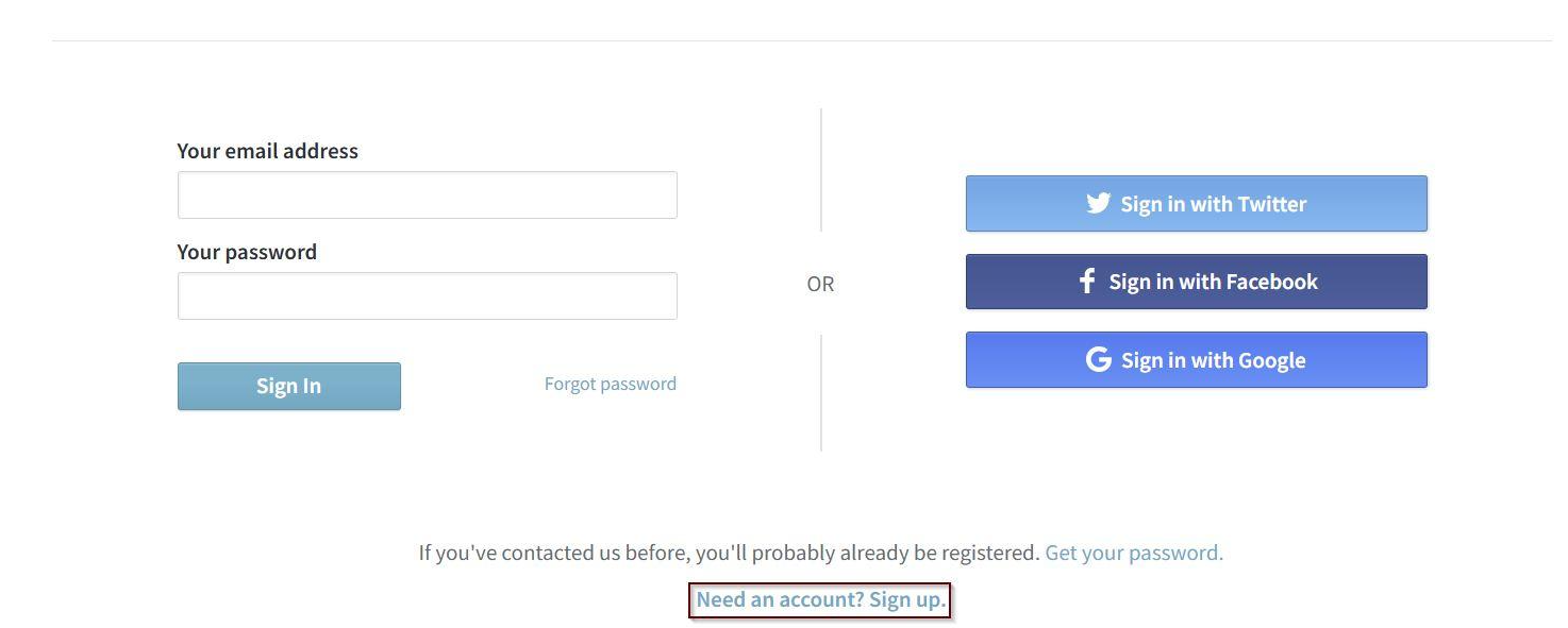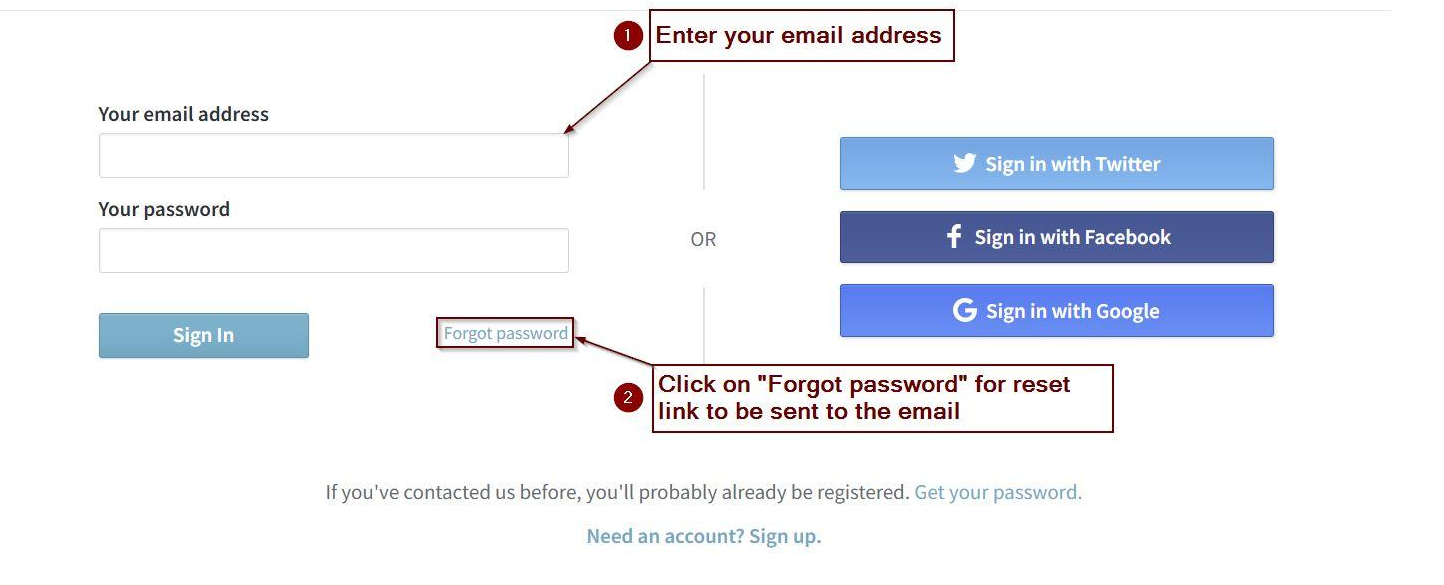 If you are a new user, please click on the “Need an account? Sign up” option instead. Enter your Full name and email to receive a verification email sent to the email address. You will be able to create a new password through the link in the verification email.