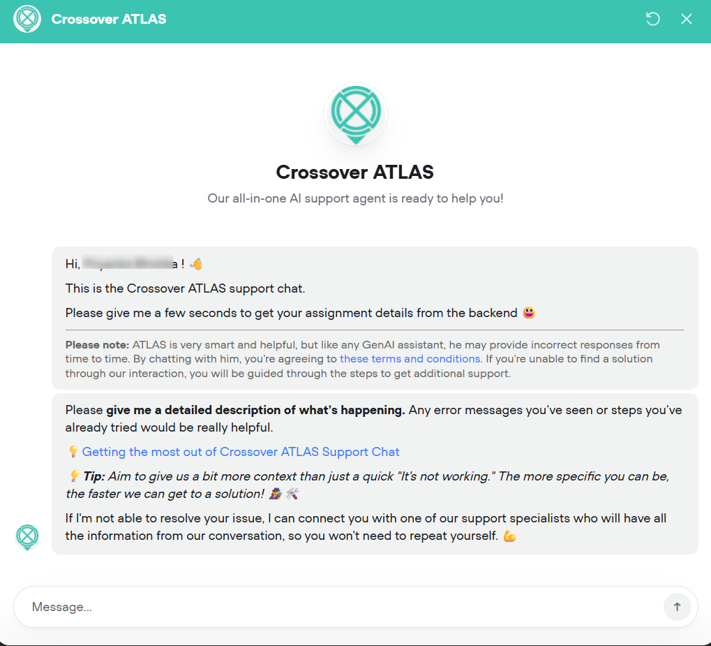 - This will open a window for ATLAS chat, where our AI, specialized in Jigsaw Interactive, will assist you with your questions and issues.